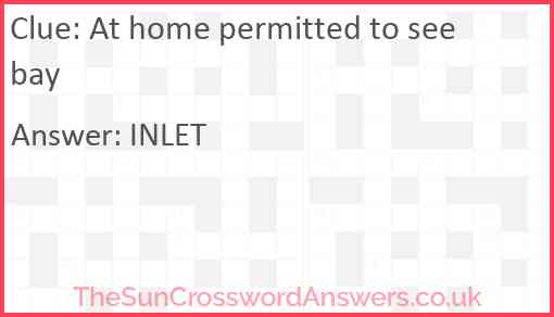 At home permitted to see bay is a crossword clue for which we have 1 possible answer and we have spotted 2 times in our database. This crossword clue was last seen on 06 November 2023 in The Sun Cryptic Crossword puzzle!