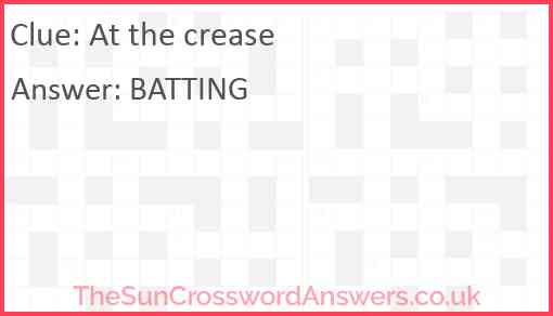 At the crease is a crossword clue for which we have 1 possible answer and we have spotted 2 times in our database. This crossword clue was last seen on 21 November 2023 in The Sun Coffee Time Crossword puzzle!