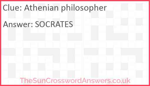 Athenian philosopher is a crossword clue for which we have 1 possible answer and we have spotted 2 times in our database. This crossword clue was last seen on 23 April 2023 in The Sun Coffee Time Crossword puzzle!