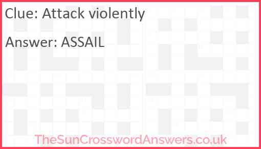 Attack violently is a crossword clue for which we have 1 possible answer and we have spotted 2 times in our database. This crossword clue was last seen on 29 October 2024 in The Sun Coffee Time Crossword puzzle!