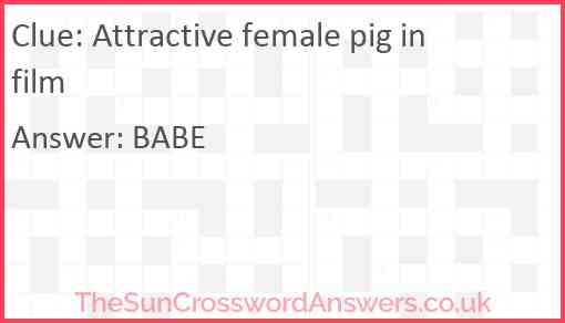 Attractive female pig in film is a crossword clue for which we have 1 possible answer and we have spotted 2 times in our database. This crossword clue was last seen on 06 January 2025 in The Sun Cryptic Crossword puzzle!