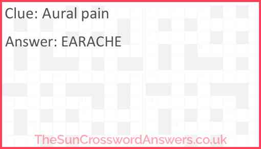 Aural pain is a crossword clue for which we have 1 possible answer and we have spotted 6 times in our database. This crossword clue was last seen on 16 May 2025 in The Sun Coffee Time Crossword puzzle!