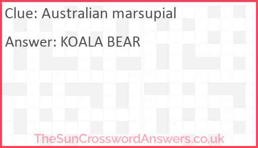 Australian marsupial is a crossword clue for which we have 2 possible answer and we have spotted 2 times in our database. This crossword clue was last seen on 04 November 2023 in The Sun Coffee Time Crossword puzzle!