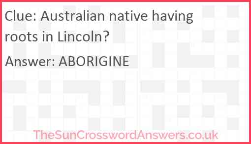 Australian native having roots in Lincoln? is a crossword clue for which we have 1 possible answer and we have spotted 2 times in our database. This crossword clue was last seen on 01 August 2024 in The Sun Cryptic Crossword puzzle!