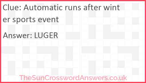 Automatic runs after winter sports event is a crossword clue for which we have 1 possible answer and we have spotted 1 times in our database. This crossword clue was last seen on 27 February 2023 in The Sun Cryptic Crossword puzzle!