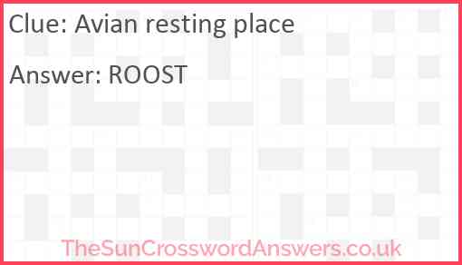Avian resting place is a crossword clue for which we have 1 possible answer and we have spotted 6 times in our database. This crossword clue was last seen on 06 March 2025 in The Sun Coffee Time Crossword puzzle!