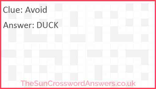 Avoid is a crossword clue for which we have 1 possible answer and we have spotted 6 times in our database. This crossword clue was last seen on 12 May 2025 in The Sun Coffee Time Crossword puzzle!