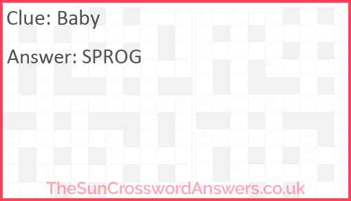 Baby is a crossword clue for which we have 1 possible answer and we have spotted 1 times in our database. This crossword clue was last seen on 06 April 2023 in The Sun Coffee Time Crossword puzzle!