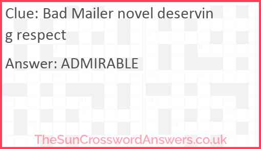 Bad Mailer novel deserving respect is a crossword clue for which we have 1 possible answer and we have spotted 1 times in our database. This crossword clue was last seen on 10 July 2021 in The Sun Cryptic Crossword puzzle!
