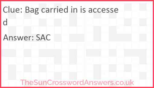 Bag carried in is accessed is a crossword clue for which we have 1 possible answer and we have spotted 3 times in our database. This crossword clue was last seen on 27 November 2024 in The Sun Cryptic Crossword puzzle!