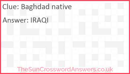 Baghdad native is a crossword clue for which we have 1 possible answer and we have spotted 2 times in our database. This crossword clue was last seen on 04 March 2024 in The Sun Coffee Time Crossword puzzle!