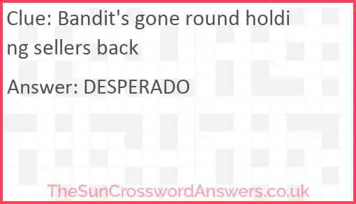 Bandit's gone round holding sellers back is a crossword clue for which we have 1 possible answer and we have spotted 2 times in our database. This crossword clue was last seen on 02 February 2023 in The Sun Cryptic Crossword puzzle!