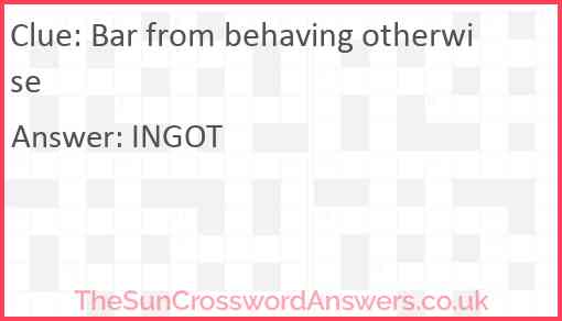 Bar from behaving otherwise is a crossword clue for which we have 1 possible answer and we have spotted 3 times in our database. This crossword clue was last seen on 10 February 2022 in The Sun Cryptic Crossword puzzle!