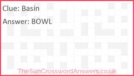 Basin is a crossword clue for which we have 1 possible answer and we have spotted 3 times in our database. This crossword clue was last seen on 02 November 2021 in The Sun Coffee Time Crossword puzzle!