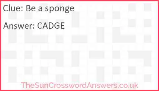 Be a sponge is a crossword clue for which we have 1 possible answer and we have spotted 1 times in our database. This crossword clue was last seen on 07 December 2023 in The Sun Coffee Time Crossword puzzle!