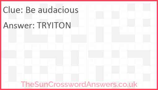 Be audacious is a crossword clue for which we have 1 possible answer and we have spotted 2 times in our database. This crossword clue was last seen on 20 January 2025 in The Sun Coffee Time Crossword puzzle!