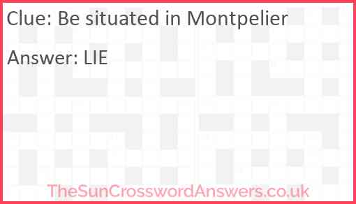 Be situated in Montpelier is a crossword clue for which we have 1 possible answer and we have spotted 4 times in our database. This crossword clue was last seen on 25 September 2024 in The Sun Cryptic Crossword puzzle!