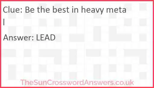 Be the best in heavy metal is a crossword clue for which we have 1 possible answer and we have spotted 3 times in our database. This crossword clue was last seen on 18 September 2022 in The Sun Cryptic Crossword puzzle!