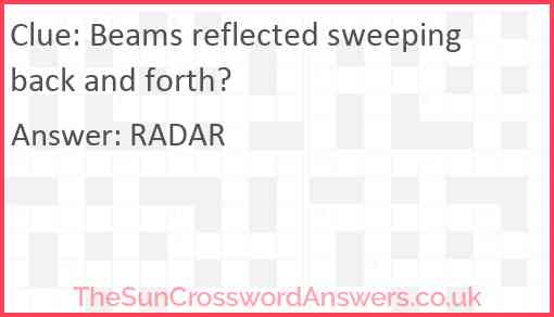 Beams reflected sweeping back and forth? is a crossword clue for which we have 1 possible answer and we have spotted 4 times in our database. This crossword clue was last seen on 09 December 2024 in The Sun Cryptic Crossword puzzle!