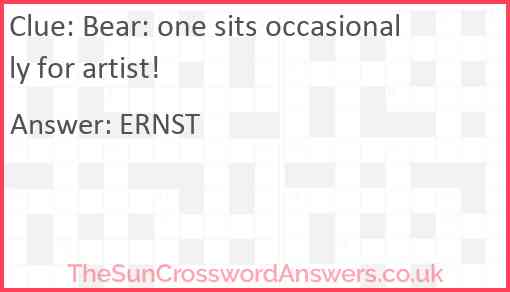 Bear: one sits occasionally for artist! is a crossword clue for which we have 1 possible answer and we have spotted 3 times in our database. This crossword clue was last seen on 11 May 2023 in The Sun Cryptic Crossword puzzle!