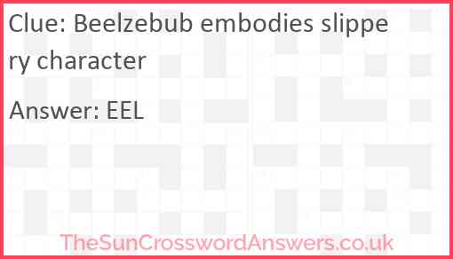 Beelzebub embodies slippery character is a crossword clue for which we have 1 possible answer and we have spotted 1 times in our database. This crossword clue was last seen on 31 October 2021 in The Sun Cryptic Crossword puzzle!