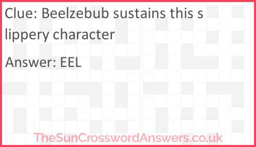Beelzebub sustains this slippery character is a crossword clue for which we have 1 possible answer and we have spotted 1 times in our database. This crossword clue was last seen on 19 October 2018 in The Sun Cryptic Crossword puzzle!