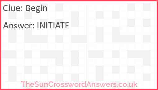 Begin is a crossword clue for which we have 2 possible answer and we have spotted 4 times in our database. This crossword clue was last seen on 13 October 2024 in The Sun Coffee Time Crossword puzzle!