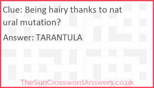 Being hairy thanks to natural mutation? is a crossword clue for which we have 1 possible answer and we have spotted 1 times in our database. This crossword clue was last seen on 19 May 2022 in The Sun Cryptic Crossword puzzle!