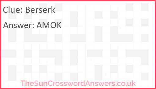 Berserk is a crossword clue for which we have 1 possible answer and we have spotted 7 times in our database. This crossword clue was last seen on 27 December 2023 in The Sun Coffee Time Crossword puzzle!