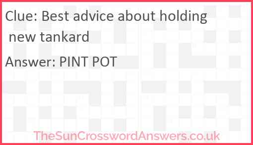 Best advice about holding new tankard is a crossword clue for which we have 2 possible answer and we have spotted 2 times in our database. This crossword clue was last seen on 28 September 2023 in The Sun Cryptic Crossword puzzle!