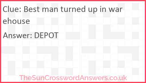 Best man turned up in warehouse is a crossword clue for which we have 1 possible answer and we have spotted 3 times in our database. This crossword clue was last seen on 13 October 2022 in The Sun Cryptic Crossword puzzle!