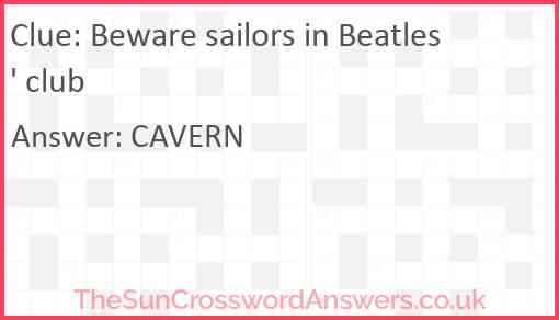 Beware sailors in Beatles' club is a crossword clue for which we have 1 possible answer and we have spotted 1 times in our database. This crossword clue was last seen on 15 April 2024 in The Sun Cryptic Crossword puzzle!