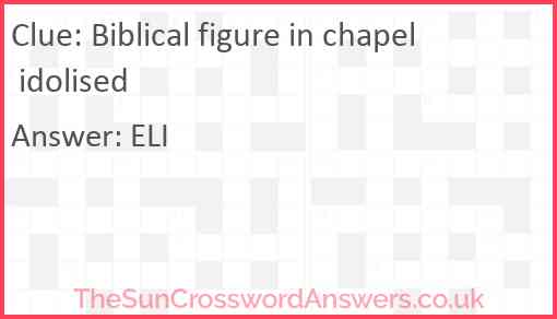 Biblical figure in chapel idolised is a crossword clue for which we have 1 possible answer and we have spotted 1 times in our database. This crossword clue was last seen on 02 June 2022 in The Sun Cryptic Crossword puzzle!