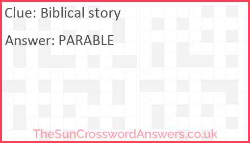 Biblical story is a crossword clue for which we have 1 possible answer and we have spotted 4 times in our database. This crossword clue was last seen on 09 February 2024 in The Sun Coffee Time Crossword puzzle!