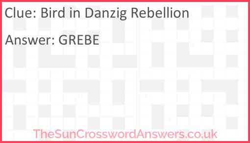 Bird in Danzig Rebellion is a crossword clue for which we have 1 possible answer and we have spotted 2 times in our database. This crossword clue was last seen on 14 July 2022 in The Sun Cryptic Crossword puzzle!