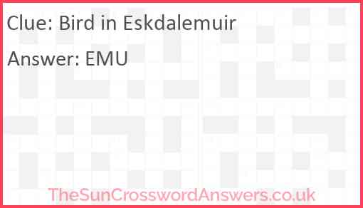 Bird in Eskdalemuir is a crossword clue for which we have 1 possible answer and we have spotted 2 times in our database. This crossword clue was last seen on 02 March 2025 in The Sun Cryptic Crossword puzzle!