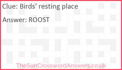 Birds' resting place is a crossword clue for which we have 1 possible answer and we have spotted 1 times in our database. This crossword clue was last seen on 11 February 2025 in The Sun Coffee Time Crossword puzzle!