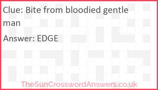 Bite from bloodied gentleman is a crossword clue for which we have 1 possible answer and we have spotted 3 times in our database. This crossword clue was last seen on 03 November 2023 in The Sun Cryptic Crossword puzzle!
