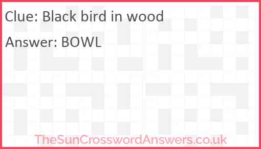 Black bird in wood is a crossword clue for which we have 1 possible answer and we have spotted 2 times in our database. This crossword clue was last seen on 18 May 2020 in The Sun Cryptic Crossword puzzle!