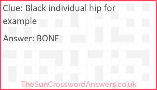 Black individual hip for example is a crossword clue for which we have 1 possible answer and we have spotted 1 times in our database. This crossword clue was last seen on 02 June 2024 in The Sun Cryptic Crossword puzzle!