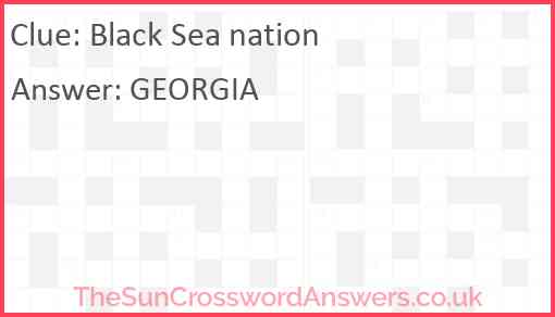 Black Sea nation is a crossword clue for which we have 1 possible answer and we have spotted 2 times in our database. This crossword clue was last seen on 04 June 2021 in The Sun Coffee Time Crossword puzzle!