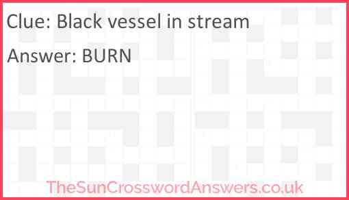 Black vessel in stream is a crossword clue for which we have 1 possible answer and we have spotted 4 times in our database. This crossword clue was last seen on 14 February 2024 in The Sun Cryptic Crossword puzzle!