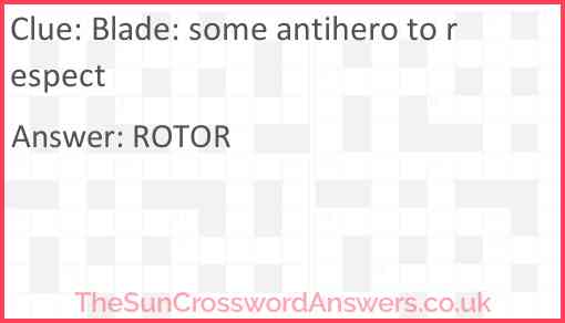 Blade: some antihero to respect is a crossword clue for which we have 1 possible answer and we have spotted 3 times in our database. This crossword clue was last seen on 01 July 2022 in The Sun Cryptic Crossword puzzle!