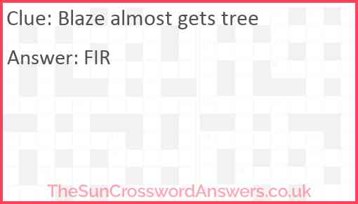 Blaze almost gets tree is a crossword clue for which we have 1 possible answer and we have spotted 3 times in our database. This crossword clue was last seen on 14 August 2024 in The Sun Cryptic Crossword puzzle!