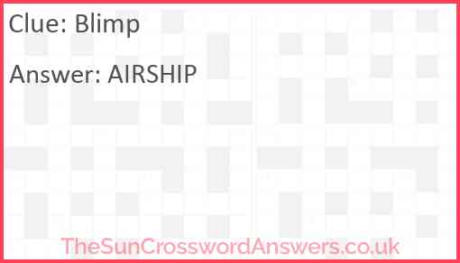 Blimp is a crossword clue for which we have 1 possible answer and we have spotted 10 times in our database. This crossword clue was last seen on 31 March 2025 in The Sun Coffee Time Crossword puzzle!
