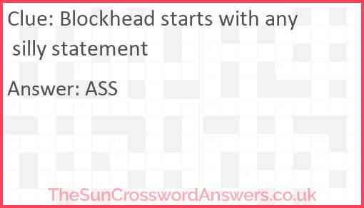 Blockhead starts with any silly statement is a crossword clue for which we have 1 possible answer and we have spotted 2 times in our database. This crossword clue was last seen on 12 January 2023 in The Sun Cryptic Crossword puzzle!
