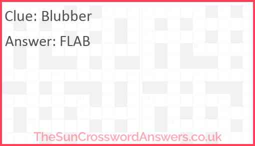 Blubber is a crossword clue for which we have 2 possible answer and we have spotted 3 times in our database. This crossword clue was last seen on 16 February 2024 in The Sun Coffee Time Crossword puzzle!
