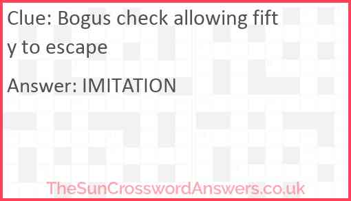 Bogus check allowing fifty to escape is a crossword clue for which we have 1 possible answer and we have spotted 1 times in our database. This crossword clue was last seen on 30 March 2025 in The Sun Cryptic Crossword puzzle!