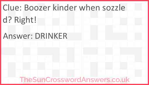 Boozer kinder when sozzled? Right! is a crossword clue for which we have 1 possible answer and we have spotted 3 times in our database. This crossword clue was last seen on 26 June 2022 in The Sun Cryptic Crossword puzzle!