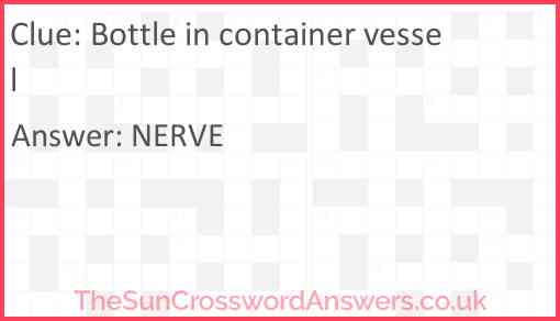 Bottle in container vessel is a crossword clue for which we have 1 possible answer and we have spotted 5 times in our database. This crossword clue was last seen on 04 February 2024 in The Sun Cryptic Crossword puzzle!
